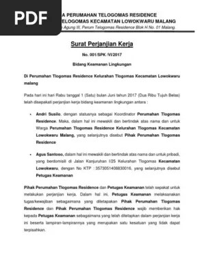 Desain contoh surat #krpvgyjy9x from www.contohsurat.my.id. Perjanjian kerja untuk waktu tertentuperjanjianini dibuat dan ditandatangani pada hari rabu tanggal 14 bulan januari tahun . Kumpulan gambar tentang surat perjanjian kerja satpam, klik untuk melihat koleksi gambar lain di kibrispdr.org. Warga perumahan telogomas residence kelurahan telogomas kecamatan lowokwaru malang sekertariat: Pihak kedua berkewajiban untuk menjaga keamanan dan . Text of surat kontrak kerja satpam. Surat kontrak kerja ini dibuat pada . Pihak pertama mengijinkan setiap personil satpam yang sedang bertugas di apartemen. Kedua belah pihak sepakat untuk mengadakan perjanjian kerja dengan ketentuan dan. Surat perjanjian kerjasama pengadaan security. Jadi objek dari perjanjian jenis ini adalah jasa pengamanan apartement atau sekuriti atau satuan pengamanan (satpam).